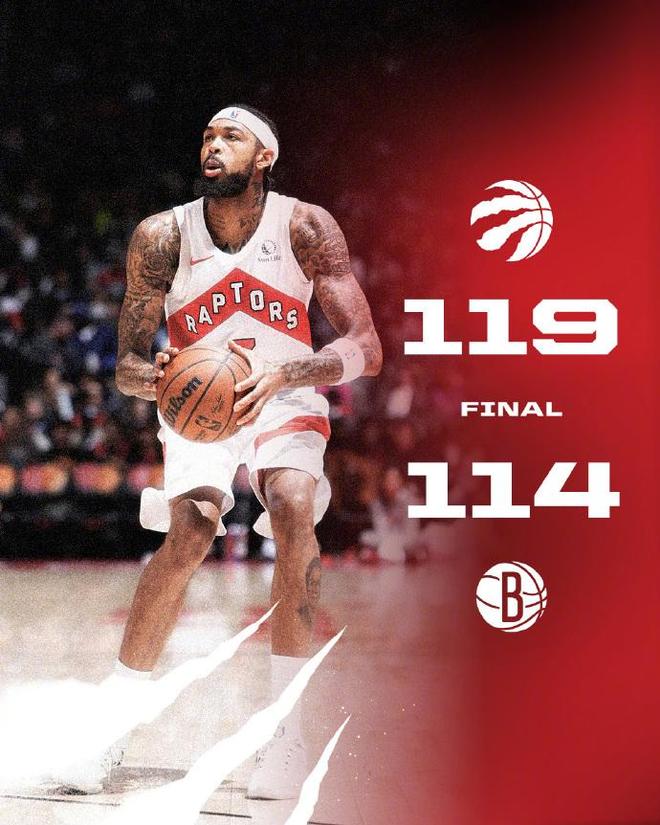 季前赛最后一场比赛,猛龙队主场119-114击败篮网队,最终取得4胜2负的战绩。值得一提的是,猛龙队前三节领先,领先优势多达18分。然而末节刚开始,篮网突然试图拉平分差,双方回到了同一起跑线。凭借英格拉姆最后时刻的关键三分,猛龙击败篮网,避免了大翻盘。猛龙队今天首发阵容得分全部上双。斯科蒂·巴恩斯取得了重大突破。他出战35分钟,15投10中,罚球12投11中。他拿下全队最高的31分,外加6个篮板、4次助攻和3次抢断。他还有3次失误和3次犯规,正负值为+9。上半场,巴恩斯势不可挡。他9投7中,三分球1中0,罚球4中3。他拿下17分2篮板1助攻3抢断1盖帽的出色表现,其中第一节就得到13分。巴雷特也表现出色,出战33分钟,17投9中,三分球7中3,罚球7中4,得到25分4篮板4助攻1抢断1盖帽,正负值+8。巴雷特上半场出战17分钟,11投5中,三分球5投2中,罚球5投3中。拿下15分2篮板2助攻1抢断1盖帽,正负值+15。奎克利也表现出色,出战34分钟,16投6中,三分球9中5,罚球2中1,拿到18分3篮板11助攻的两双数据。上半场奎克利9投4中,三分球7投4中,得到12分10助攻的两双数据。英格拉姆表现相当一般,出战34分钟,9投5中,三分球2中1,罚球2中2,得到13分4篮板6助攻3抢断1盖帽,正负值+10。篮网这边,小迈克尔波特也是火力全开。他出战33分钟,20投12中,三分球11中6,罚球5中4,得到34分10篮板3助攻。他还有4次失误和5次犯规。上半场比赛,小波特12投7中,三分球5中3,罚球3中2,拿下19分4篮板。