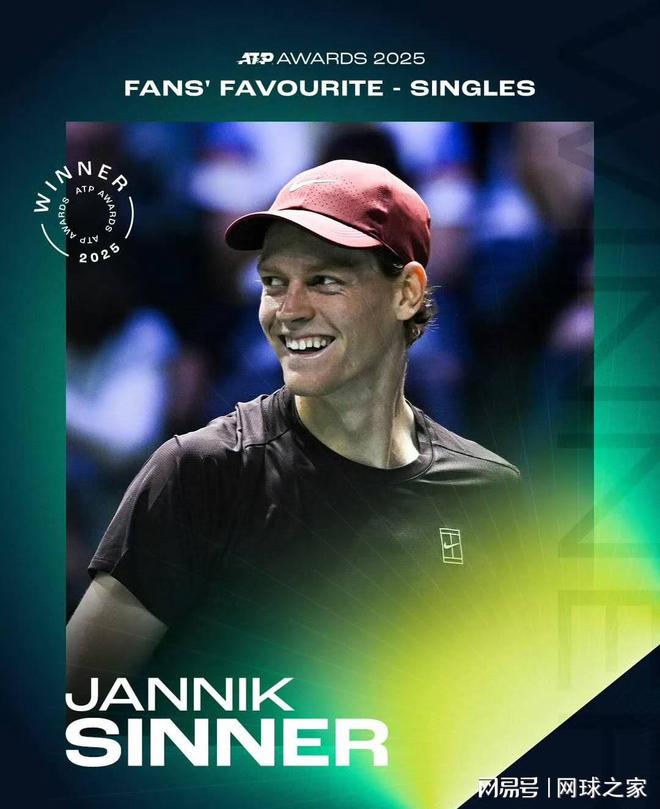小编:ATP官方近日宣布,意大利网球选手辛纳当选2025年度最受欢迎单打球员奖项,这已是辛纳连续第三年获此殊荣。